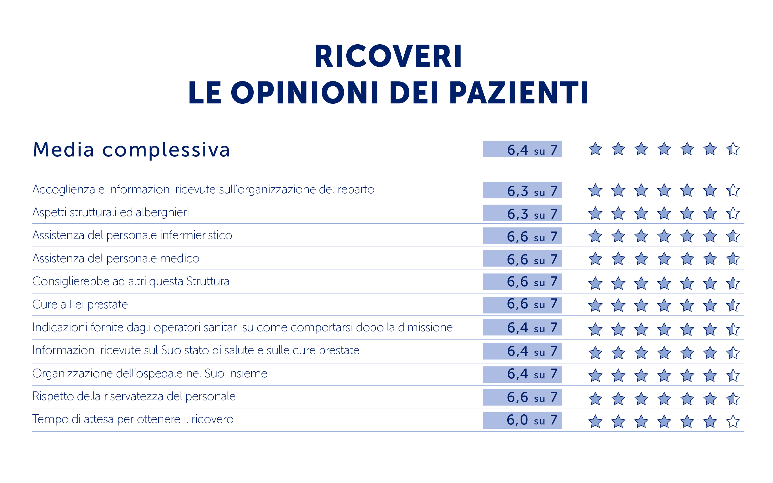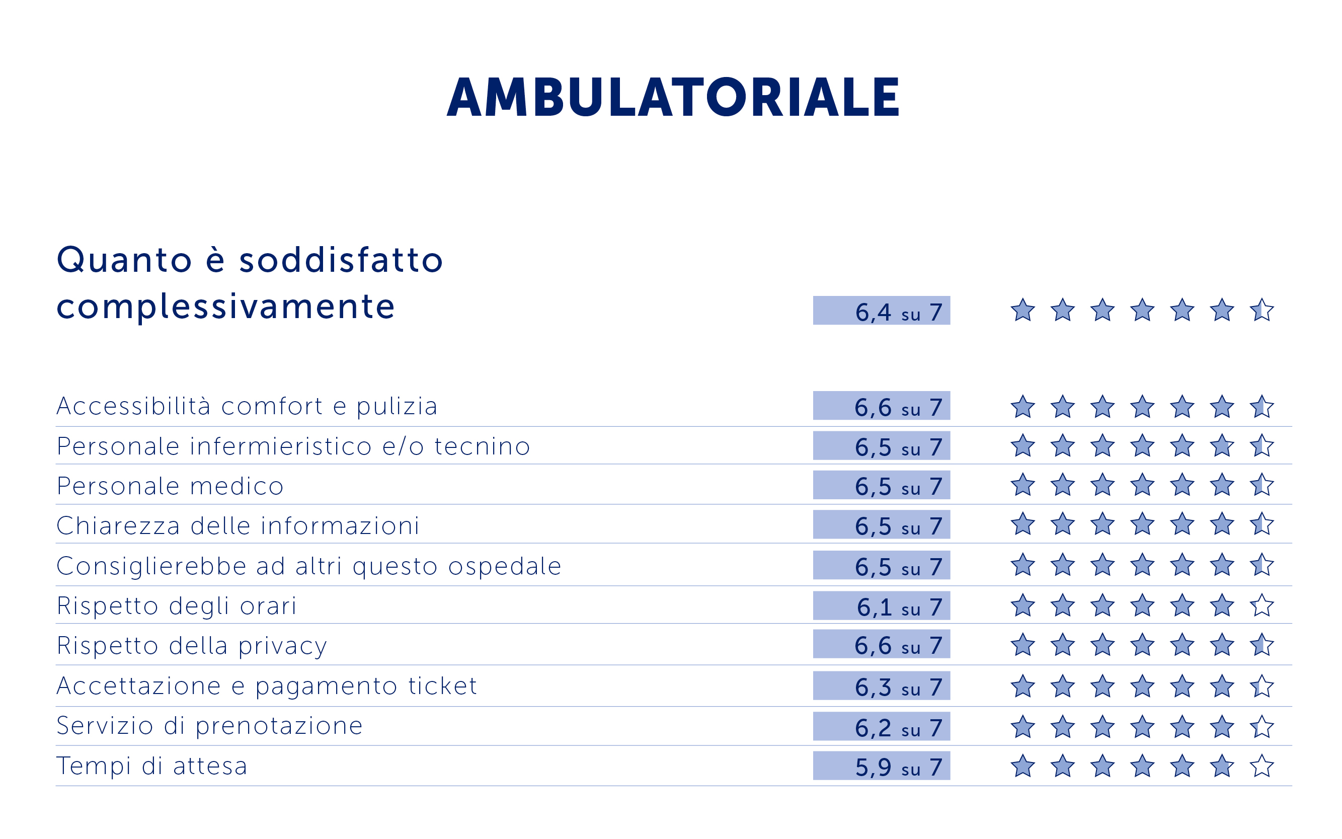 I dati forniti dai questionari di Customer Satisfaction restituiscono all'Ospedale informazioni utili, sia generali che specifiche, per identificare eventuali criticità o aree meritevoli di miglioramento.